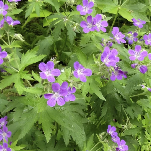 Герань лесная — многолетнее травянистое растение высотой 30-60 см с красивыми пальчато-раздельными листьями. Цветёт в июне-июле нежными лилово-розовыми цветками диаметром 2-3 см с пятью симметричными лепестками. Стебли ветвистые, опушённые. Корневище толстое, косорастущее. Предпочитает полутенистые места с рыхлыми, богатыми гумусом почвами. Отличается высокой зимостойкостью (до -40°C) и устойчивостью к болезням. В ландшафтном дизайне используется в природных садах, теневых цветниках и для оформления опушек. Купить Герань лесную оптом можно в нашем питомнике. Мы предлагаем качественные саженцы с закрытой корневой системой.